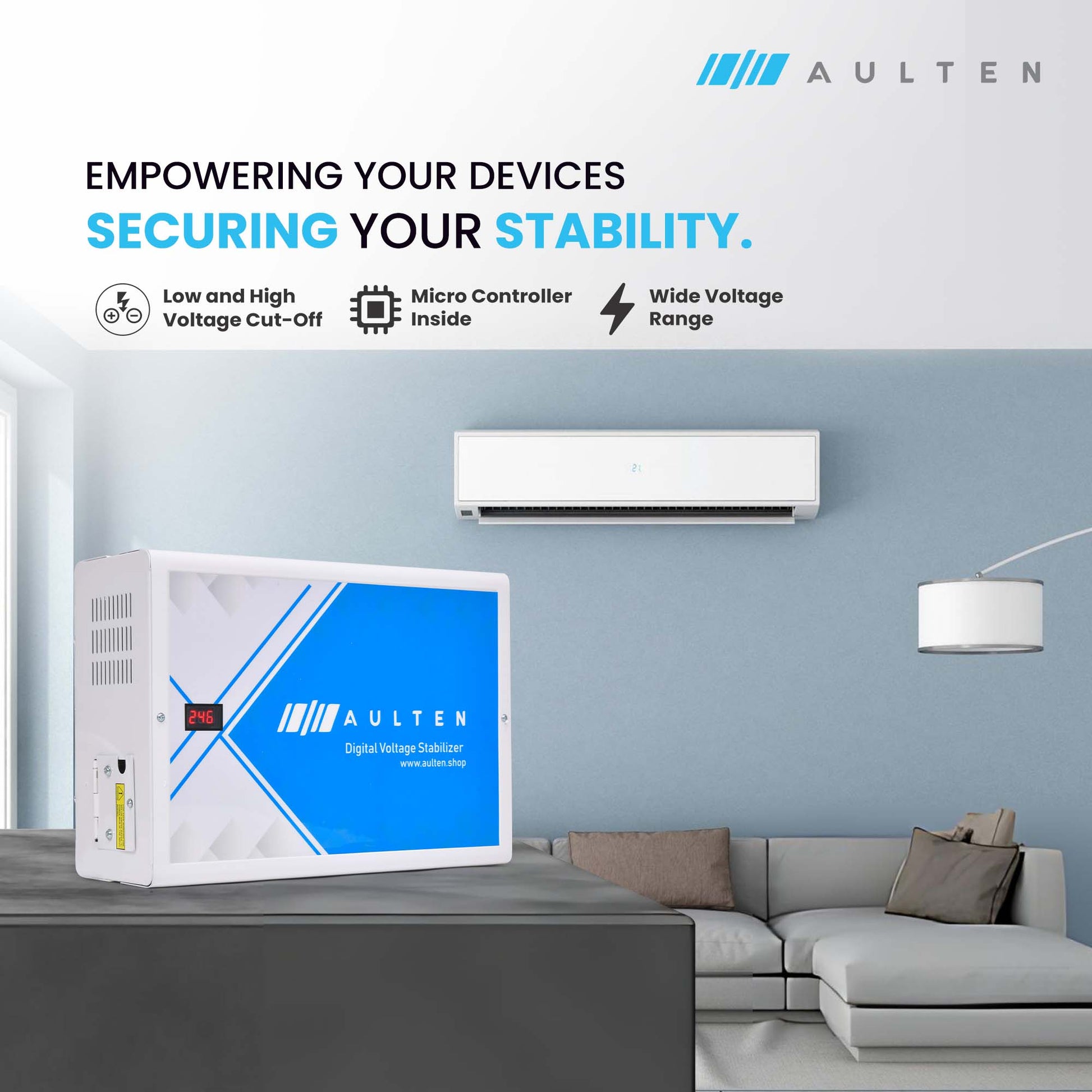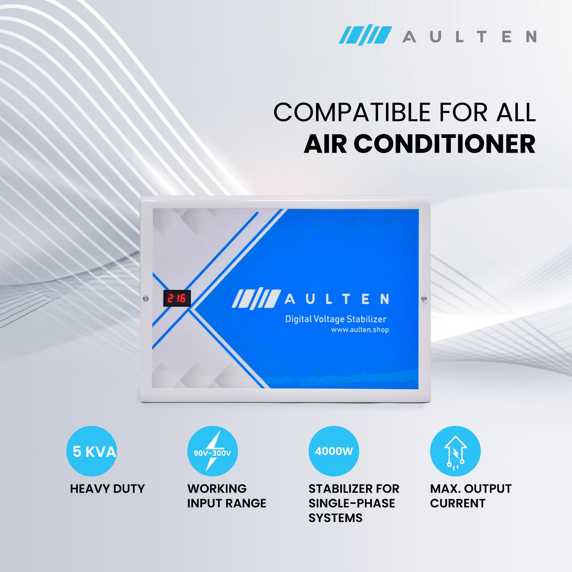 AULTEN Digital Voltage AC Stabilizer for Upto 1.5, 2.0 Ton AC 5 KVA 4000W 90V-300V AD024 (White)