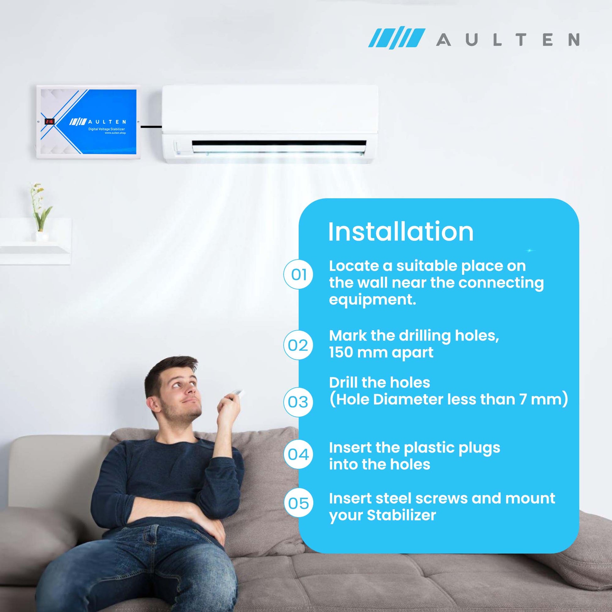AULTEN Digital Voltage AC Stabilizer for Upto 1.5, 2.0 Ton AC 5 KVA 4000W 130V-280V AD022 (White)