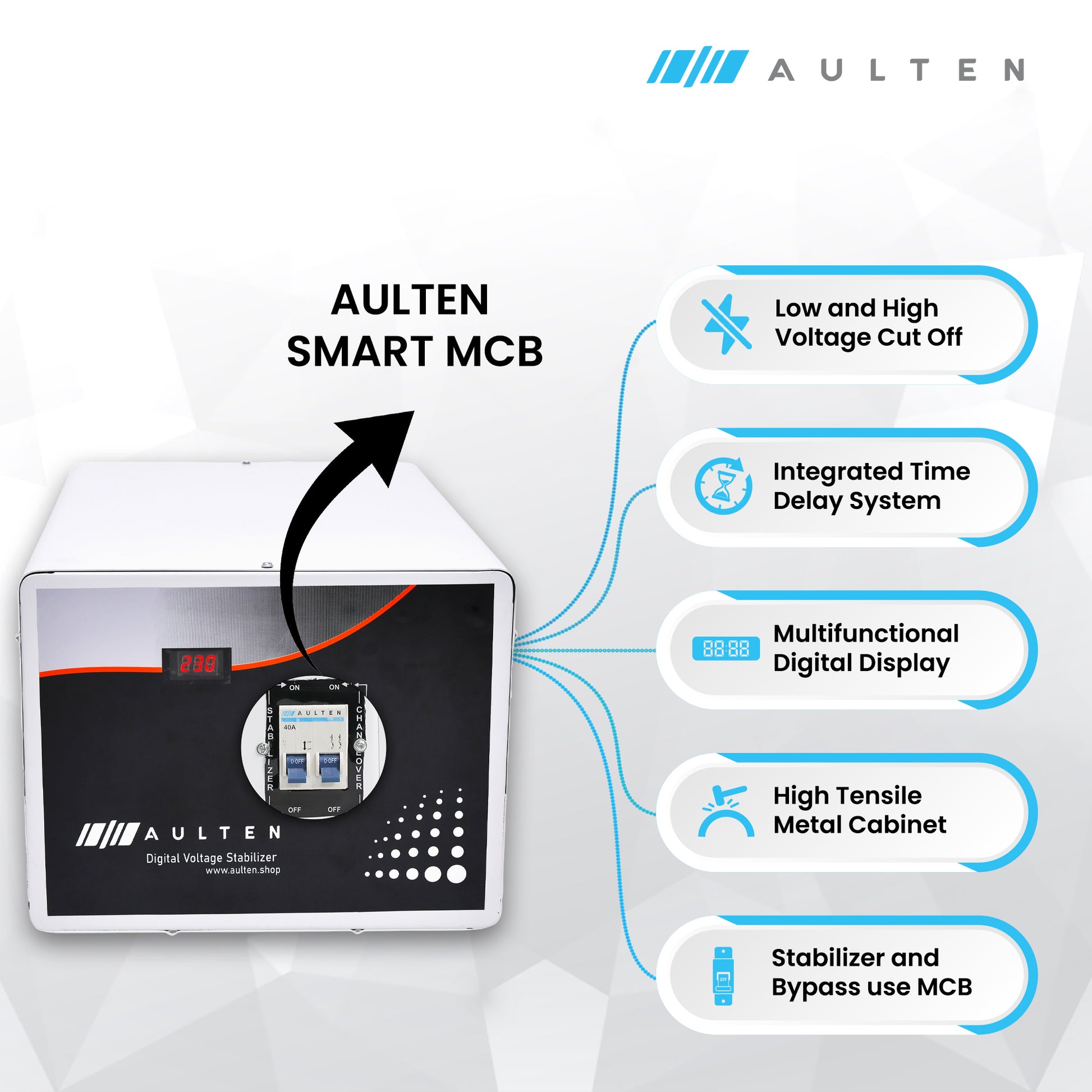 AULTEN COPPER Mainline Voltage Stabilizer for Home 10 KVA Heavy Duty 8000W 90V-300V AD015 (White) for Single Phase