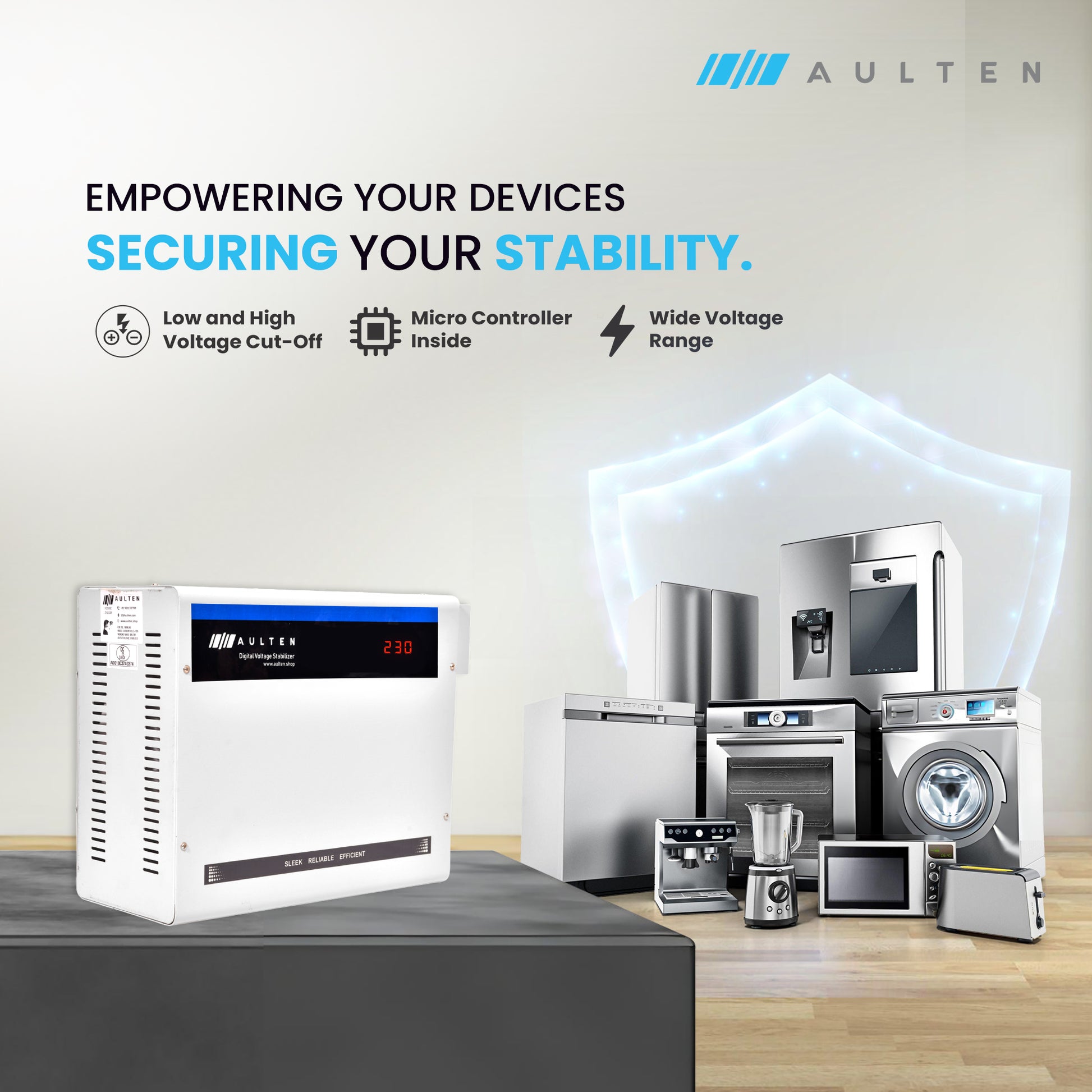 This product is designed exclusively for domestic use. For commercial or industrial applications, we recommend using a servo voltage stabilizer.