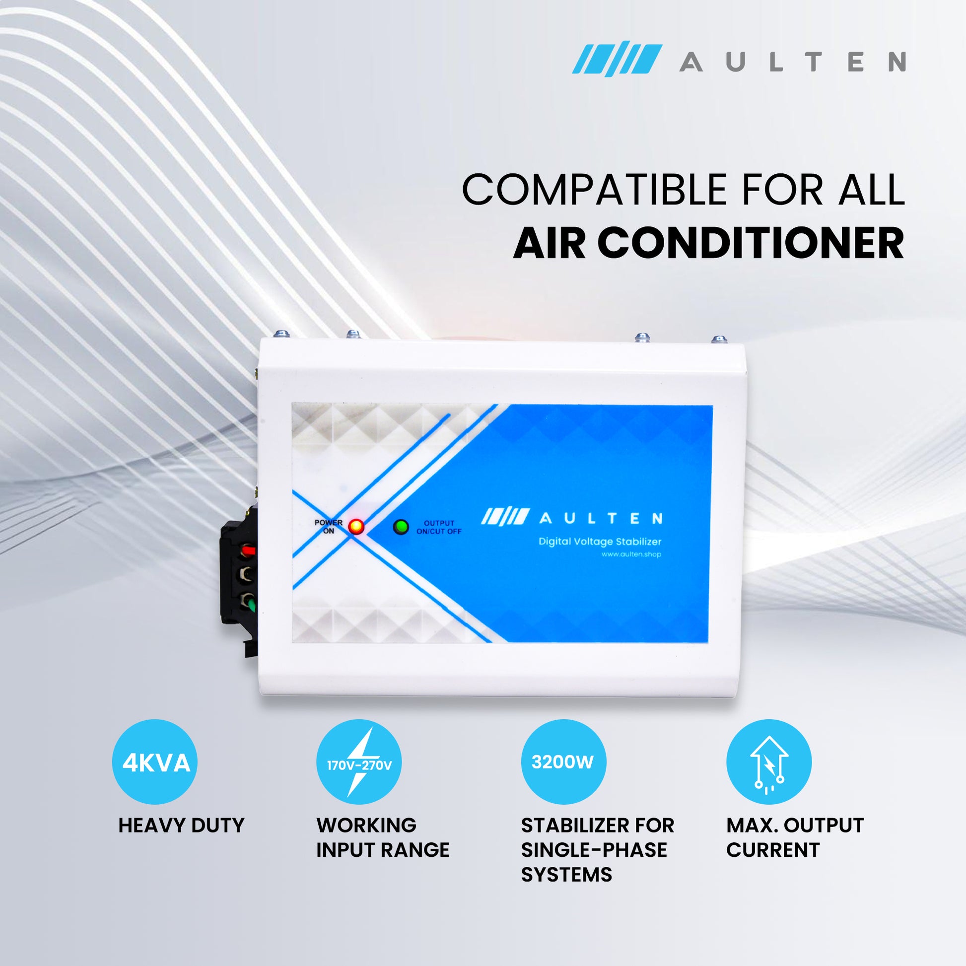 AULTEN Voltage Stabilizer for Upto 0.8, 1.0, 1.5 Ton AC 4 KVA 3200W 170V-270V AD053 (White)
