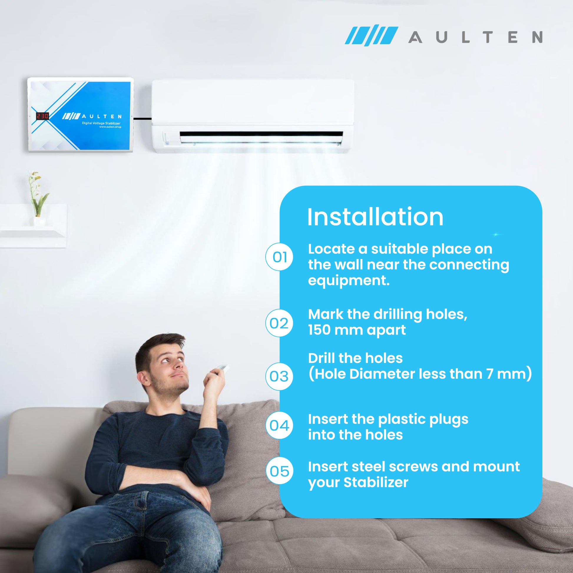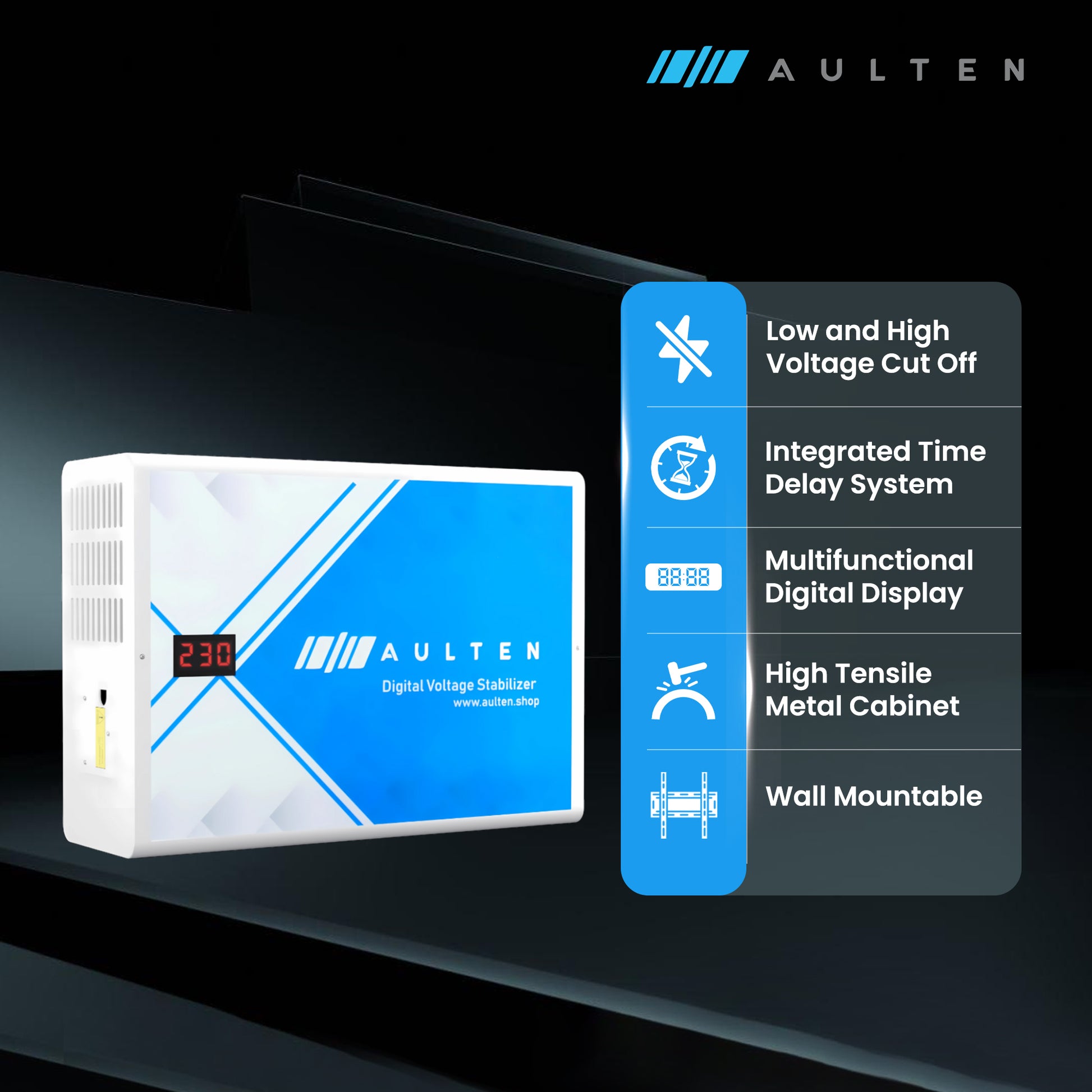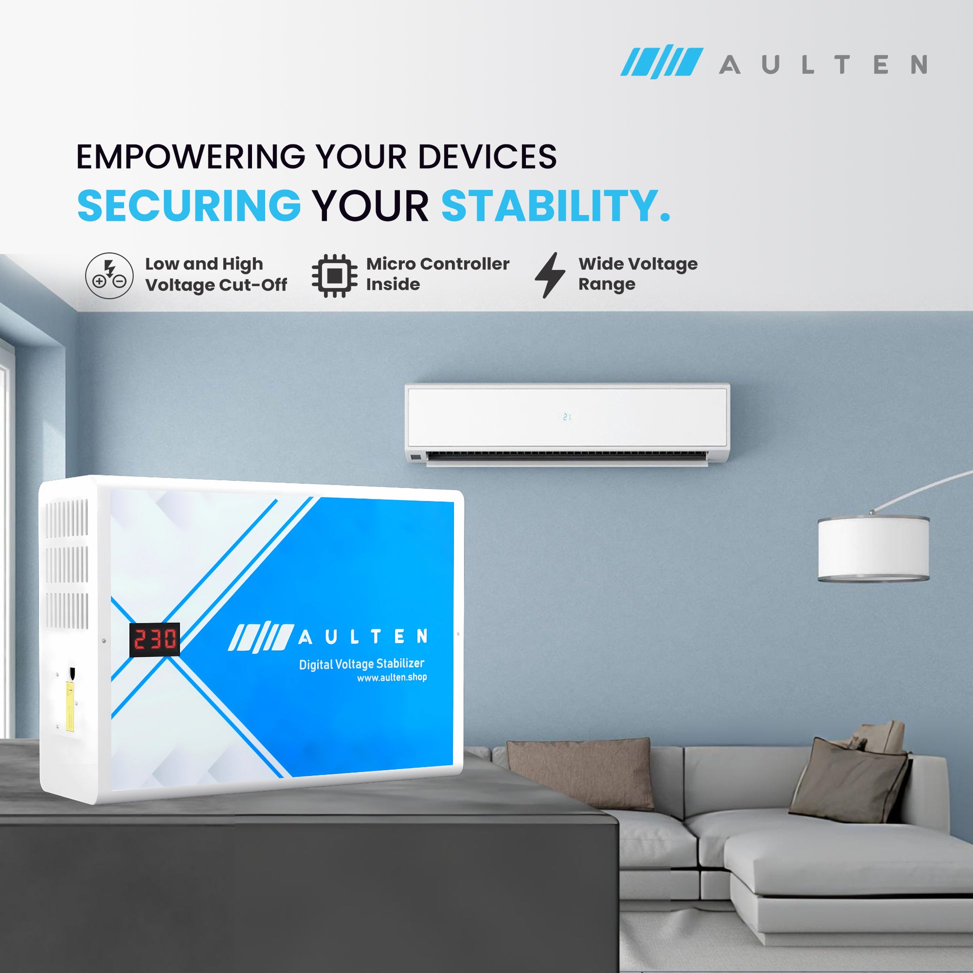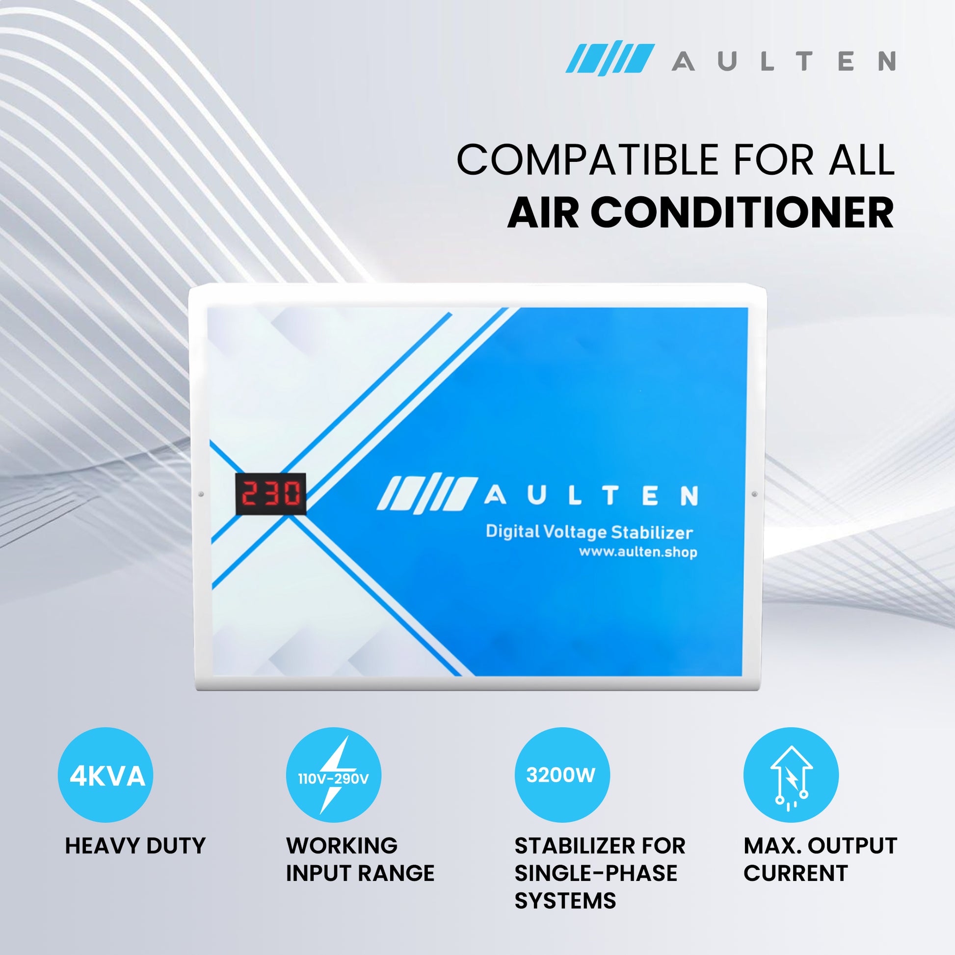 AULTEN Digital Voltage Stabilizer for AC Upto 0.8, 1.0, 1.5 Ton AC 4 KVA 3200W 110V-290V AD057 (White)