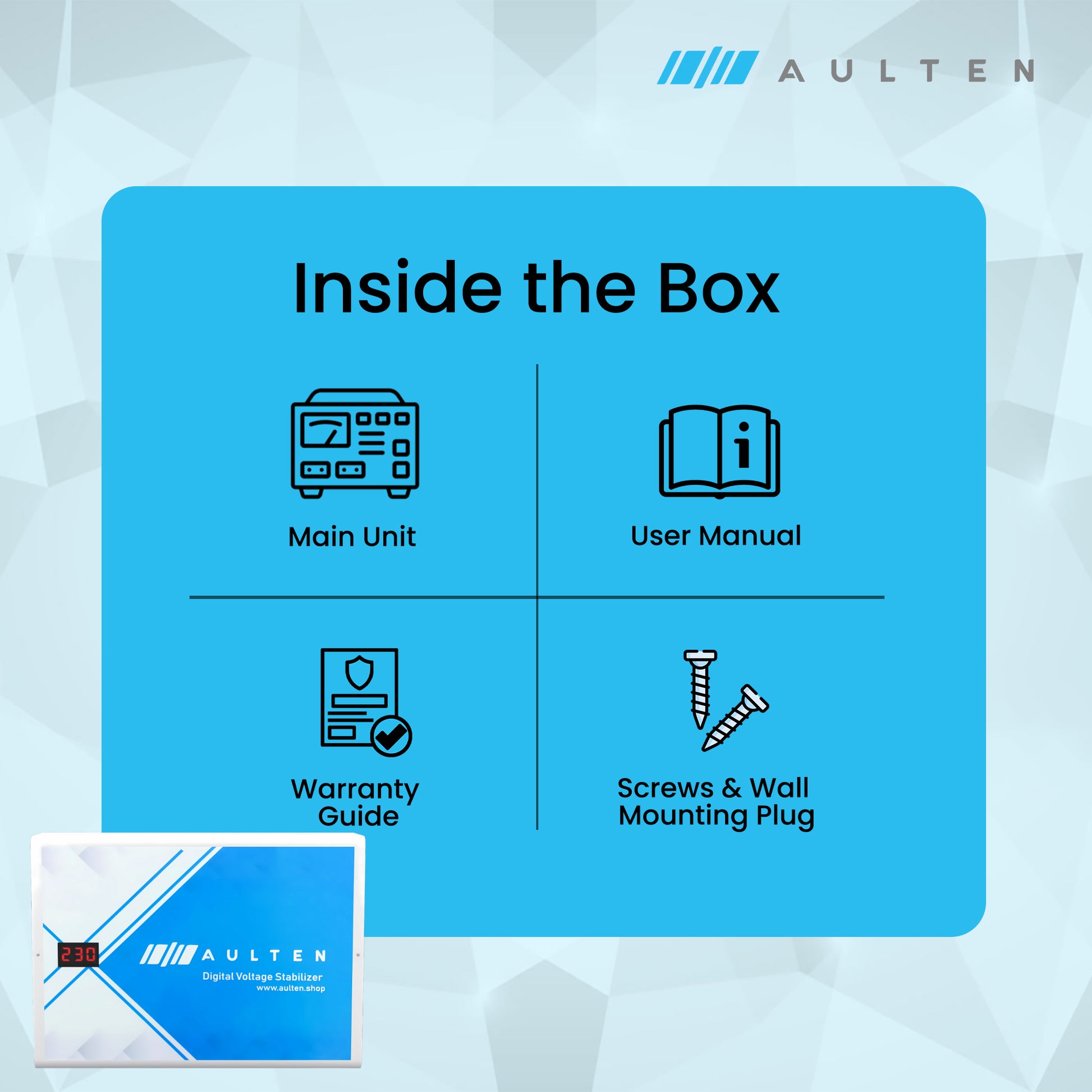 This product is designed exclusively for domestic use. For commercial or industrial applications, we recommend using a servo voltage stabilizer.
