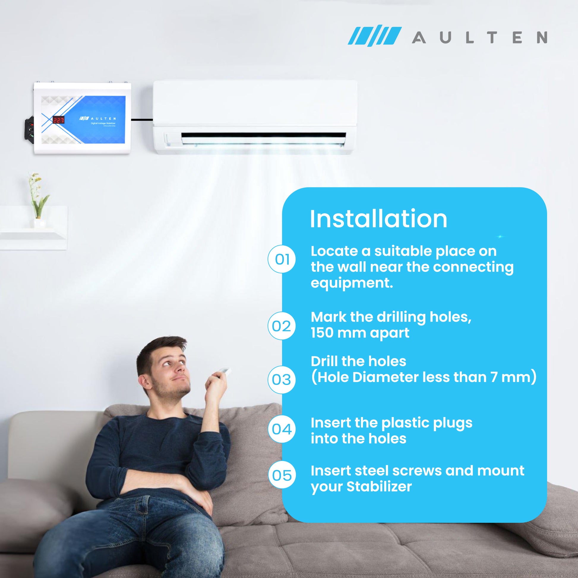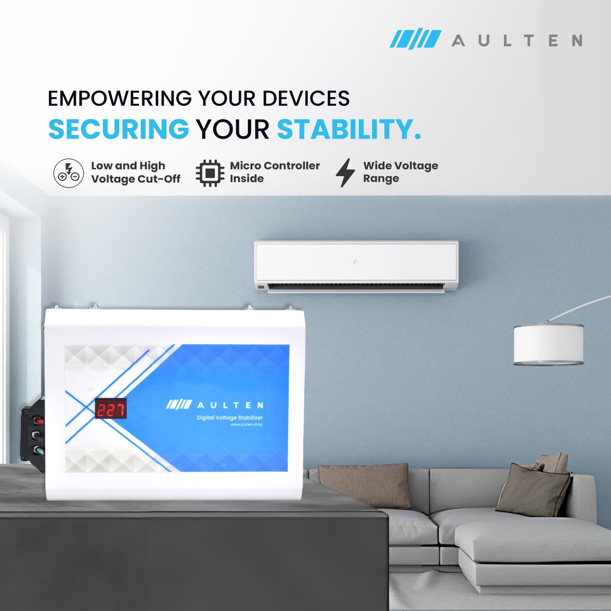AULTEN Digital Voltage Stabilizer for AC Upto 0.8, 1.0, 1.5 Ton AC 4 KVA 3200W 170V-270V AD061 (Grey)