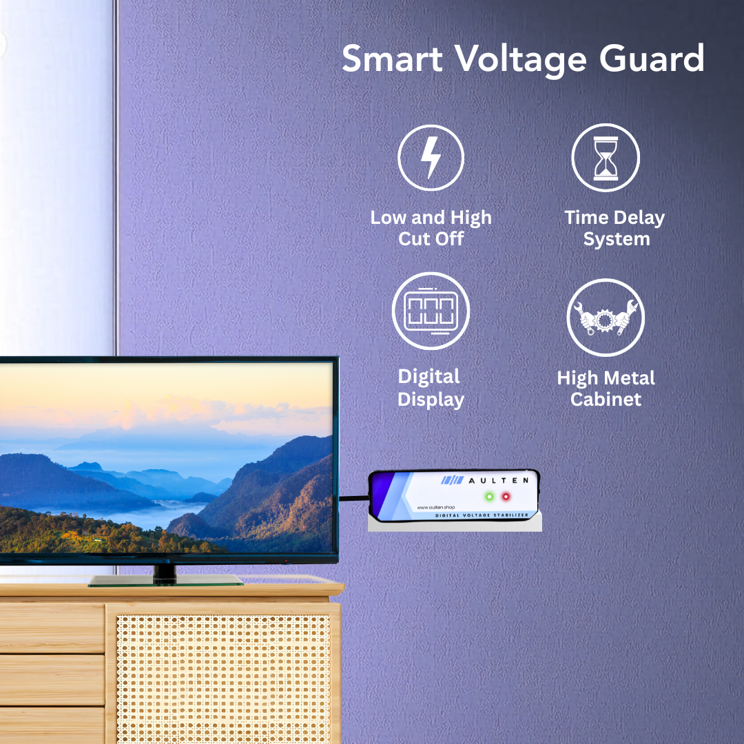 AULTEN Digital Voltage Stabilizer for TV Upto 82cm TV 1.5 Amps 90V-290V AD032 (BLACK)